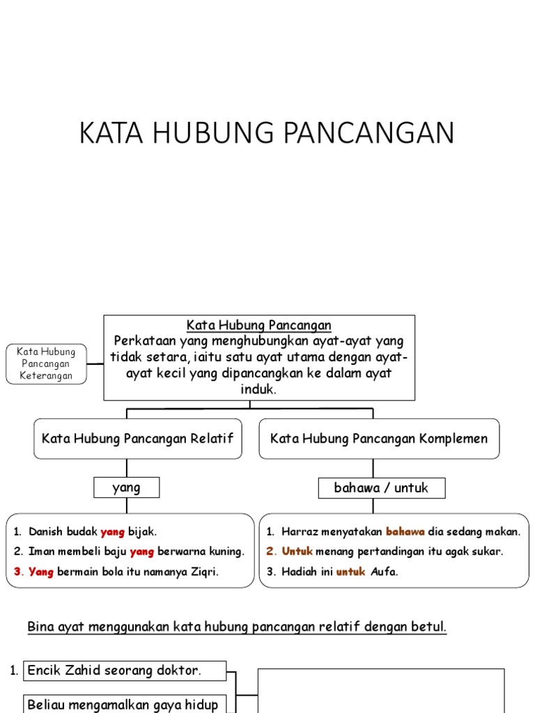 Kata Hubung Pancangan Relatif - Yuk simak selengkapnya di artikel ini!. Kata hubung terbahagi kepada tiga iaitu: Kakak memujuk adik yang sedang menangis itu. Kata jenis ini hanyalah yang. Kata hubung pancangan menyambungkan satu ayat induk dengan satu atau lebih ayat kecil. Banyak individu mempunyai kecerdasan emosi.